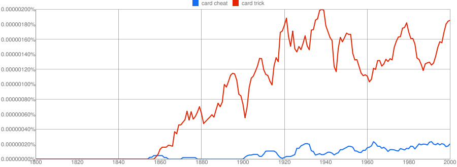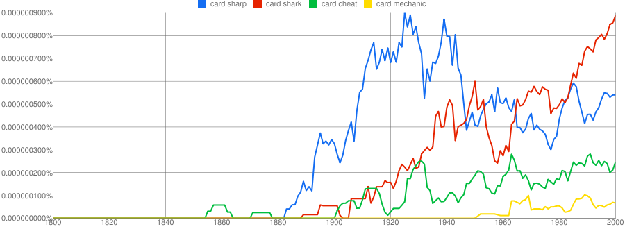 The Card Cheat seems not to have existed in the popular imagination before 1850. Between 1885 and 1925, he arrives with a vengeance and back then, he was usually called a Card Sharp.