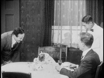 Houdini's performance shows a marked improvement over his work in The Master Mystery. I think a lot of the credit here has to go to director James Cruze. Cruze started out as an actor (he played the lead roles in a 1912 version of Dr. Jekyll and Mr. Hyde) and you can see all kinds of actorly touches in Houdini's performance. For example, contrast Houdini's usual mode of doing dialogue scenes in The Master Mystery: eager face, leaning forward, staring fixedly at the person he is acting with, as if hanging on every word...